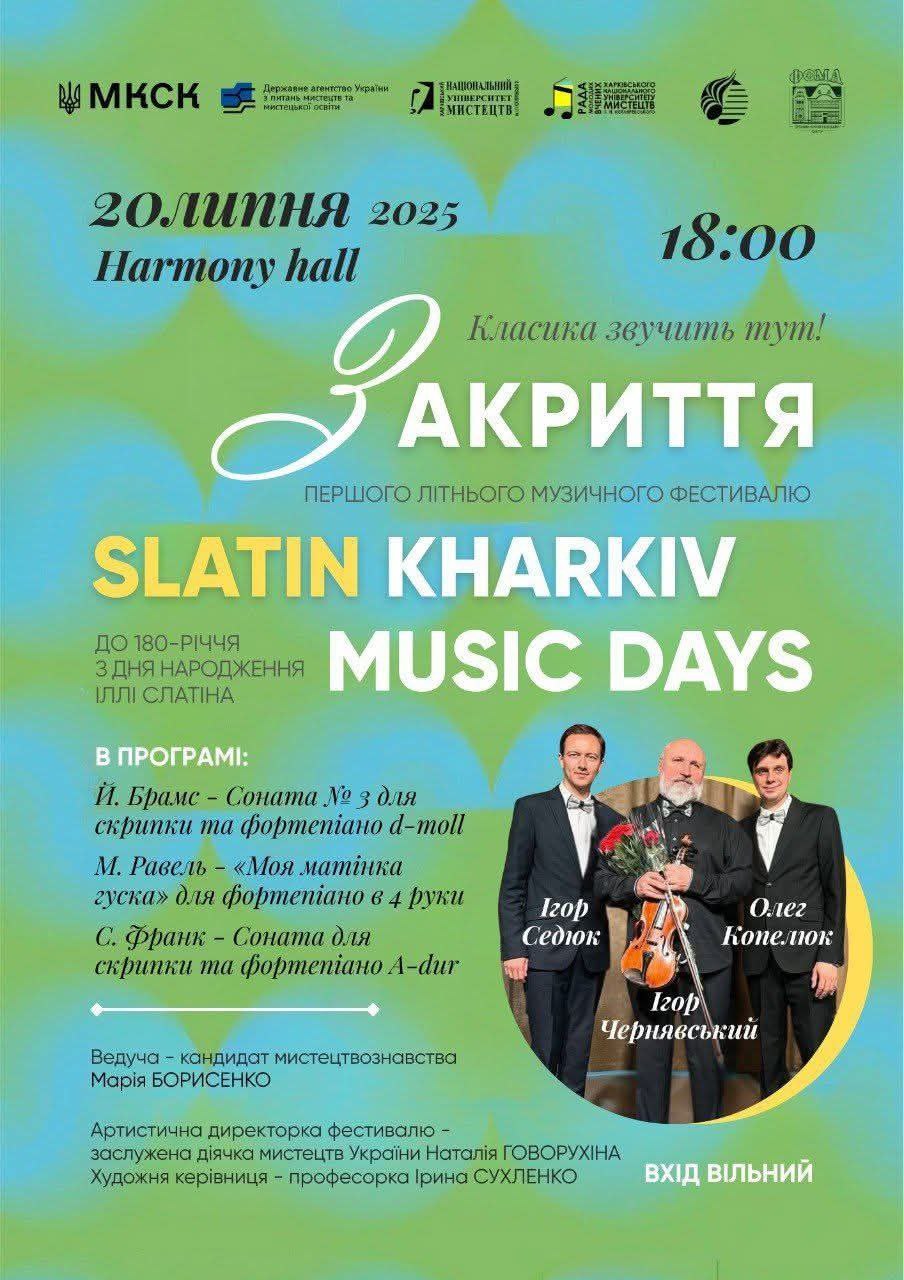 🎼На честь святкування 180-річчя з Дня народження Іллі Слатіна — першого ректора Харківської консерваторії, відомого диригента, музично-громадського діяча педагога — запрошуємо вас 20 липня о 18:00 на ЗАКРИТТЯ Літнього музичного фестивалю "SLATIN KHARKIV MUSIC DAYS" Класика зсучить тут!
